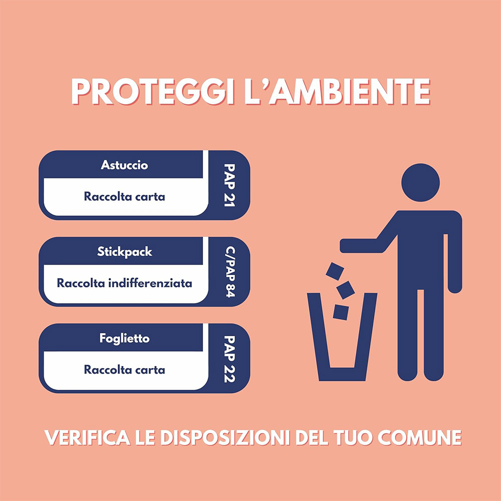 Si consiglia di assumere uno stick al giorno, dopo il pasto principale. Sciogliere il contenuto dello stick direttamente in bocca.