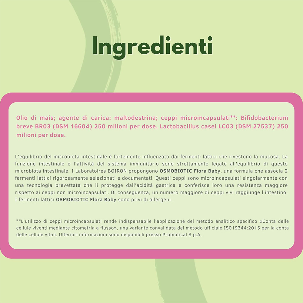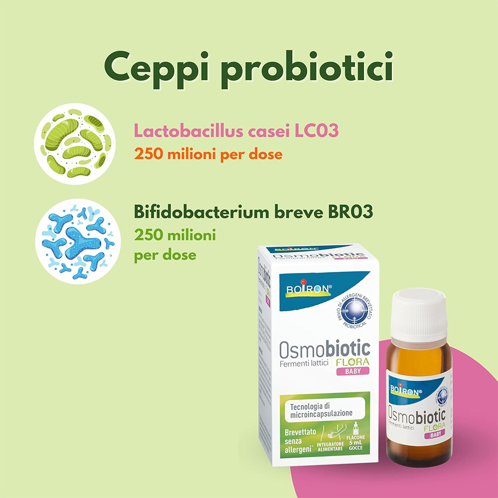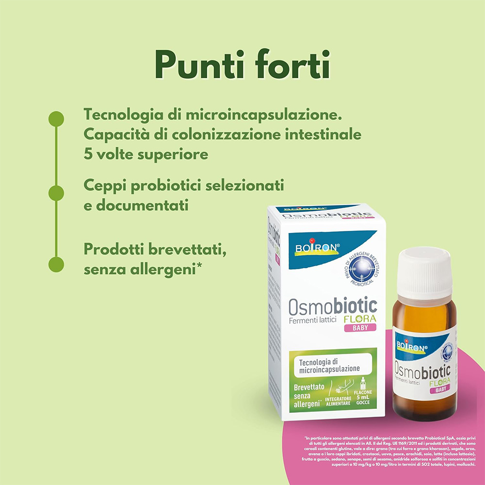 Osmobiotic Flora Baby è un integratore alimentare a base di fermenti lattici. I Laboratoires BOIRON propongono OSMOBIOTIC Flora una formula che associa fermenti lattici rigorosamente selezionati e documentati.