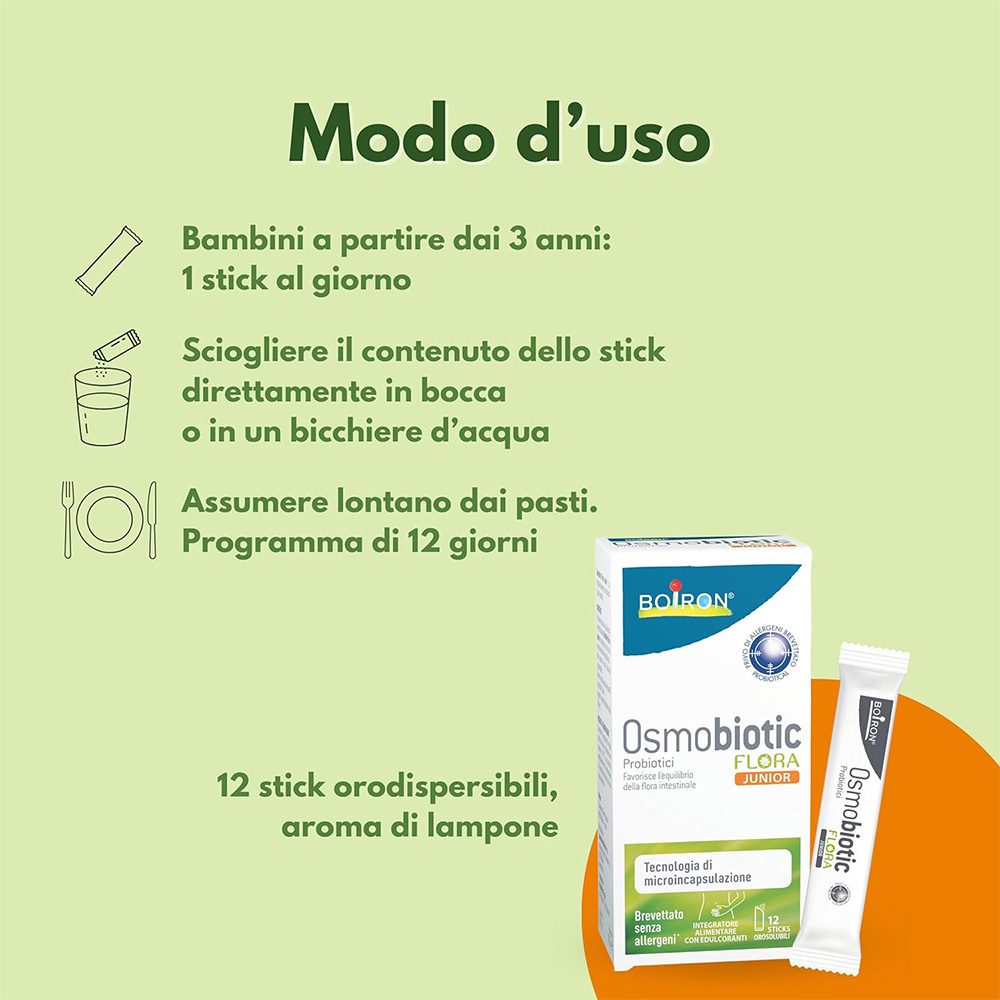 Osmobiotic Flora Junior è un integratore alimentare con edulcoranti a base di probiotici. I Laboratoires BOIRON propongono OSMOBIOTIC Flora una formula che associa probiotici rigorosamente selezionati e documentati. Prodotto in scadenza il 30.04.2023: promozione “Anti-spreco” .