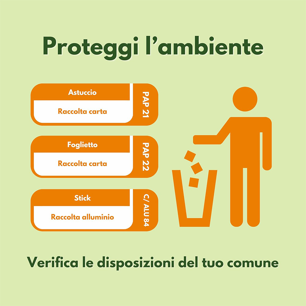 Bambini a partire da 3 anni: 1 stick al giorno. Sciogliere il contenuto dello stick direttamente in bocca o eventualmente in un bicchiere d’acqua, preferibilmente lontano dai pasti, per 12 giorni. Ripetere se necessario.